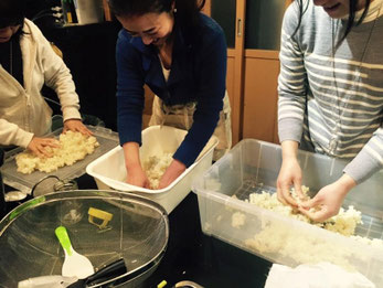 ついても、麹をつくればよくわかります。 まずは、この麹づくりの作業で、手がすべすべになるのを体験しることができます。